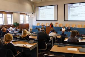 Prvním přednášejícím byla Mgr. Svatava Škantová z Ministerstva práce a sociálních věcí ČR. Jejím nelehkým cílem bylo seznámit potenciální žadatele s výzvou č. 129 Podpora sociálního podnikání z Operačního programu Zaměstnanost, která byla v červnu tohoto roku významně aktualizována. Ve své prezentaci kladla důraz zejména na změny oproti původnímu znění výzvy. Tyto změny se týkaly například vymezení cílových skupin či podporovaných aktivit.