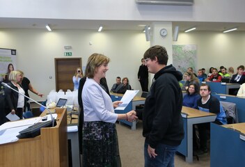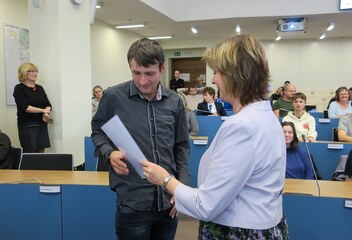 V úterý 14. října 2025 se v sále zastupitelstva sešel realizační tým projektu Příležitost pro začátek s úspěšnými účastníky projektu, zástupci zaměstnavatelů a škol, kteří již druhým rokem pomáhají aktivity projektu realizovat. Projekt se zaměřuje na mladé lidi, kteří na prahu své pracovní kariéry mají stížené podmínky - buď díky zdravotnímu handicapu nebo vlivem nestabilního prostředí, ve kterém vyrůstali. Prostřednictvím rozvoje základních kompetencí, aktivit zaměřených na získání pracovních návyků a zkušeností a zprostředkování odborné praxe se snažíme tuto cestu mladým lidem usnadnit.